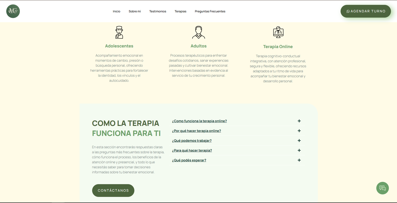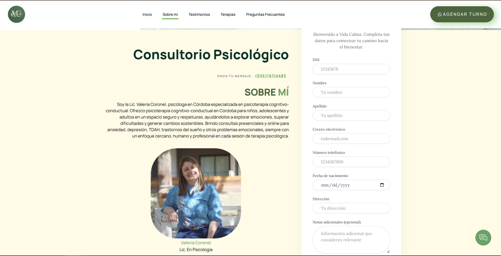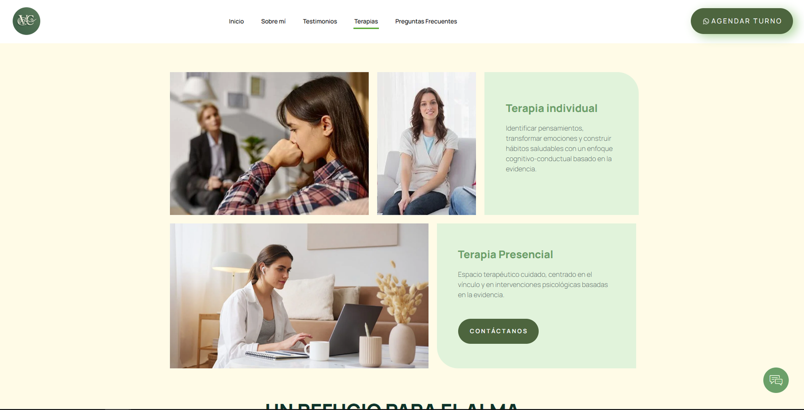 El sitio web fue diseñado como una landing estratégica con una identidad visual clara, cálida y alineada con el concepto de bienestar. La estructura prioriza la comunicación directa de los servicios, la facilidad de navegación y la generación de confianza, integrando contenidos explicativos, llamados a la acción efectivos y canales de contacto optimizados para la captación de pacientes y consultas.